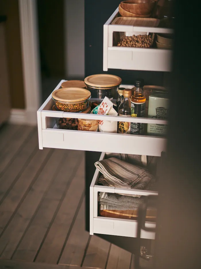 What do a well-organised drawer and a freshly-steeped cup of afternoon tea have in common? They're both small details that make every day a little calmer and simpler for these two new, busy parents. In this kitchen, a ready-to-nibble snack is as easy to find as a quiet moment by a sunny window. Happiness!