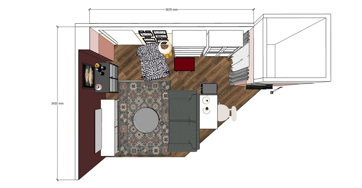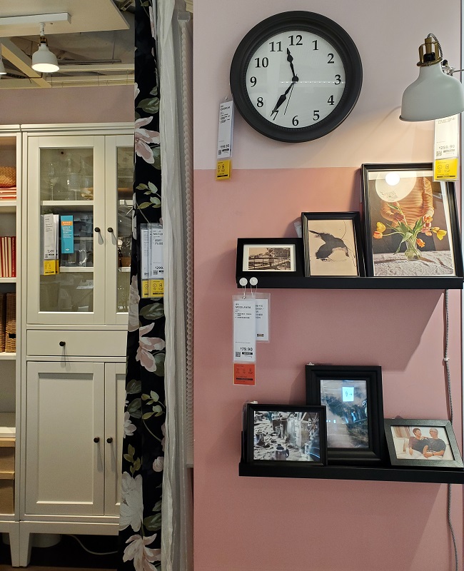 The couple is a born traveller and collector with a penchant for organisation, their living room houses so many of their favourite things. Glass-fronted cabinet takes care of their impresive museum, framed prints and paintings line the walls – protected yet on show.