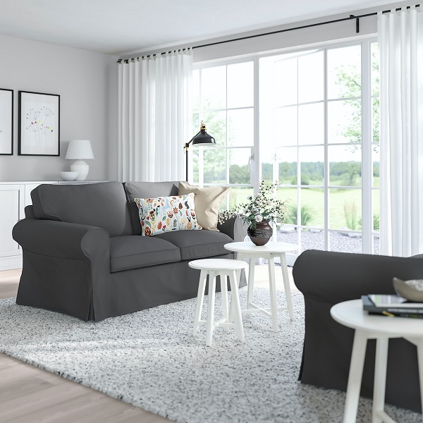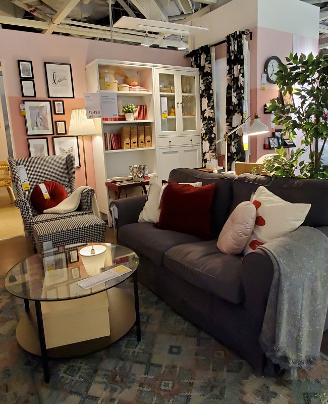 This inviting living room exudes a charming traditional vibe with a delightful blend of textiles, including plaid and floral patterns, along with rattan and checkered paper boxes to create a distinctive aesthetic. The generously sized and cozy sofa offers a perfect spot to unwind and relax, whether you're having a leisurely conversation with your partner or indulging in a tranquil moment with a captivating book.