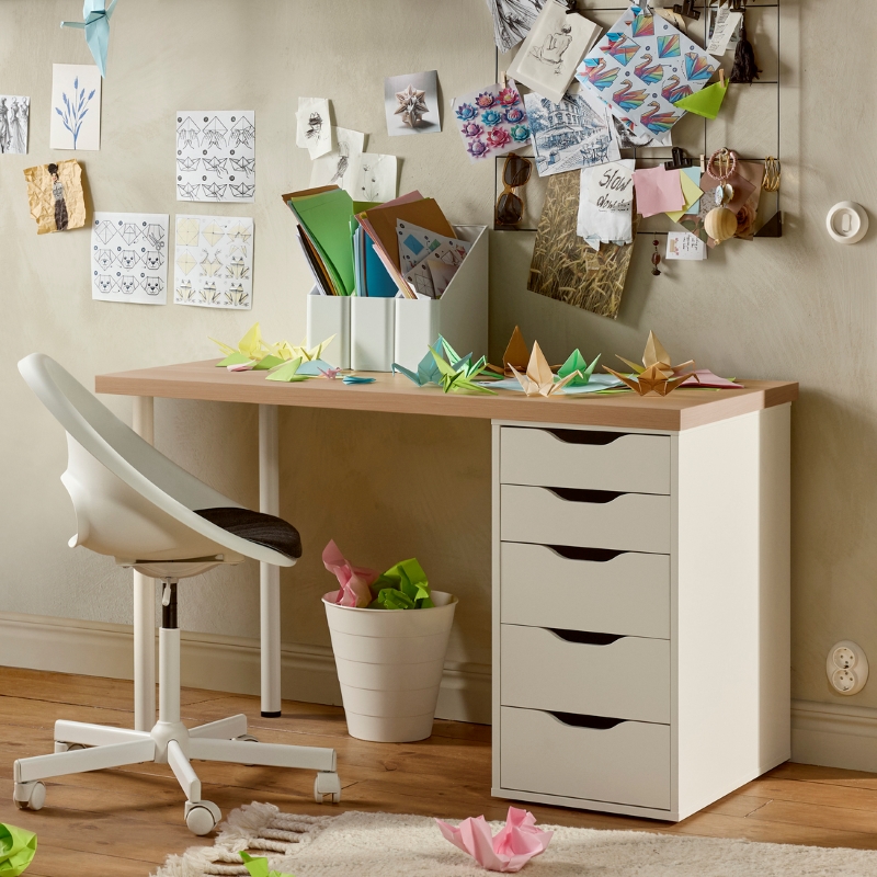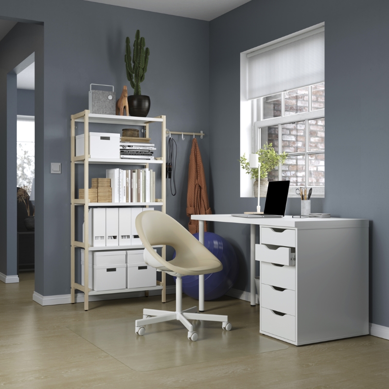 With its distinctive, streamlined design, the MICKE series of modern office furniture comes with a contemporary look and many different colours to choose from. Specially designed to fit small spaces, all the parts have the same height and depth so they’re easy to use together.