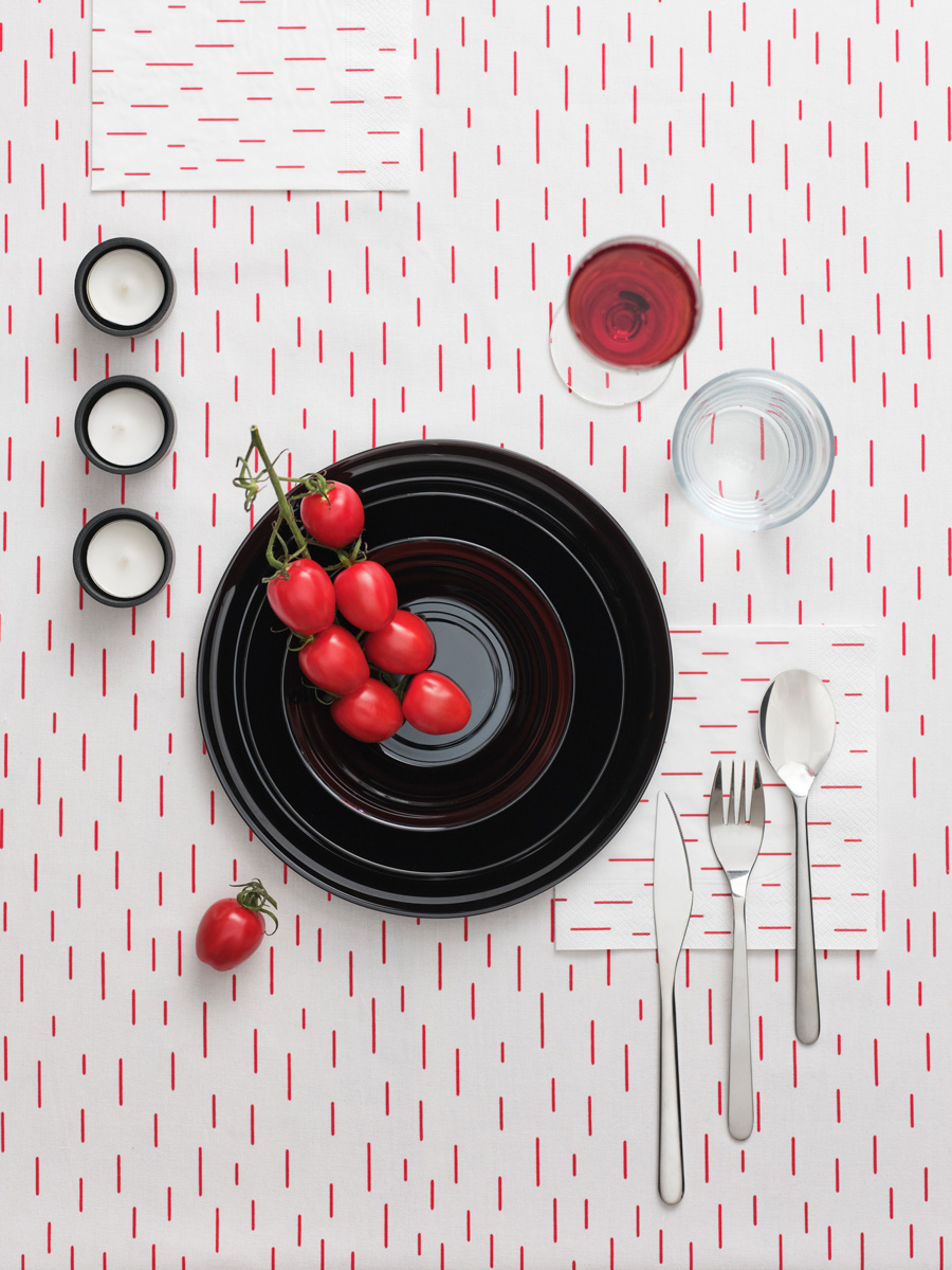 Going bold isn’t just for raising the tempo in the living room. The stylish contrast of white and red graphics with the SNÖKRABBA tablecloth and glossy black surface of NÄTBARB dinnerware put the food you serve in focus. Bon appetit!