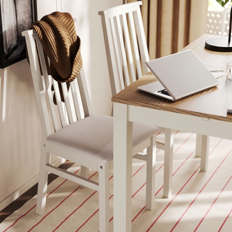 Extendable dining table adapts easily to different group sizes. Cushioned chairs with machine-washable covers make daily care effortless.