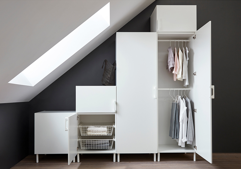 Keep your clothes under the eyes or hide them in drawers. It is up to you to build the storage combination that best suits with our ELVARLI tool.