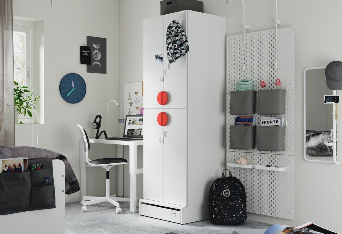 BOAXEL is an opened storage solution and easy to customise to different rooms and situations. From sorting clothes in the bedroom and the laundry room to organising coats in the hallway.
