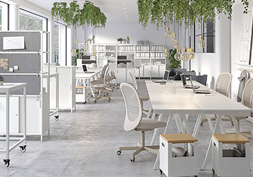 What stimulates your creativity? Here is a planning tool that lets you create a workspace you love by trying different combinations of table tops and legs in various styles and colours.