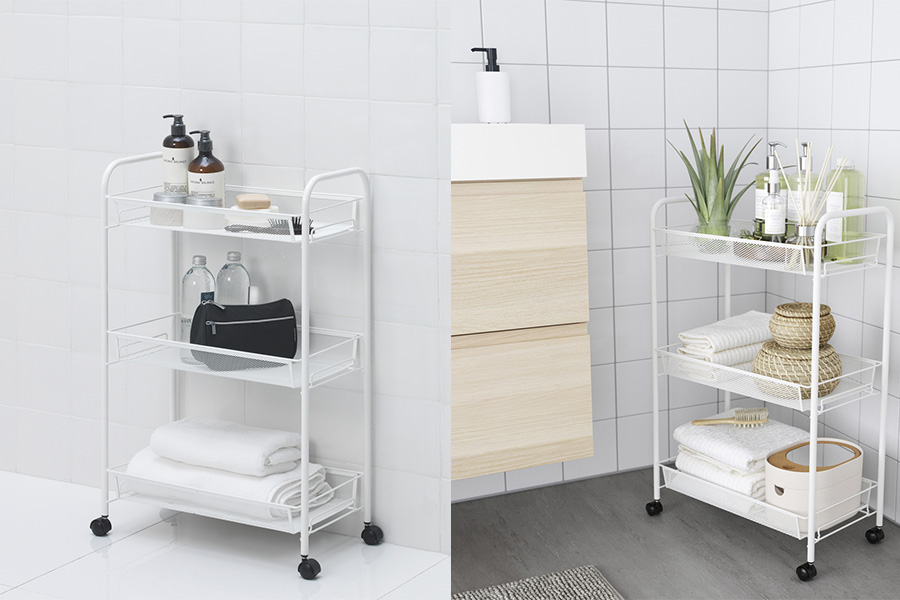 Keep your essentials tidy with the HORNAVAN trolley. Equipped with castors for easy mobility, it’s a smart solution for flexible bathroom storage.