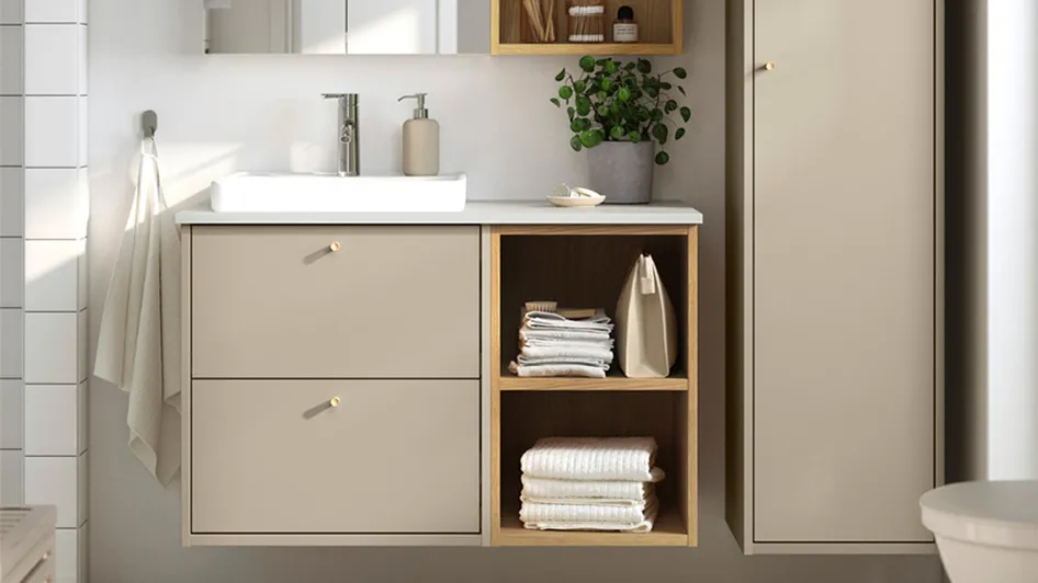 The IVÖSJÖN series offers fresh and practical solutions for small bathrooms. They made with more than 50% recycled plastic, this collection is not only environmentally friendly but also adds a touch of freshness to your bathroom.