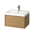 The oak effect finish with a natural wooden look transforms the space into a relaxing, at-home wellness retreat. A contemporary expression enhanced with integrated handles, minimising unnecessary details.