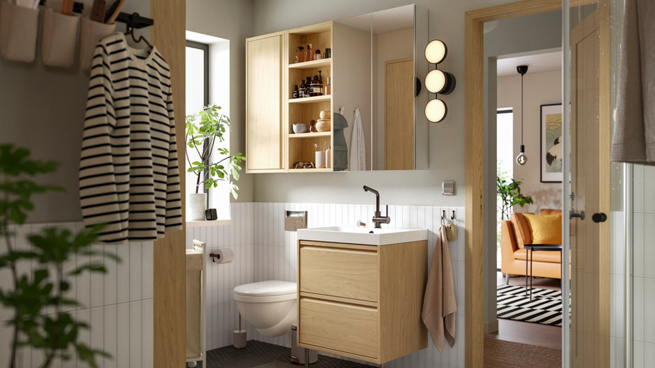 With its sleek modern look, generous storage solutions and soft-closing drawers, the ÄNGSJÖN system of contemporary furniture creates a spa-like feel in your bathroom. The single and double drawer units come in a range of colours including warm wood and elegant high gloss white.