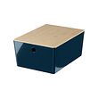 box with lid, black-blue/bamboo, 18x26x8 cm