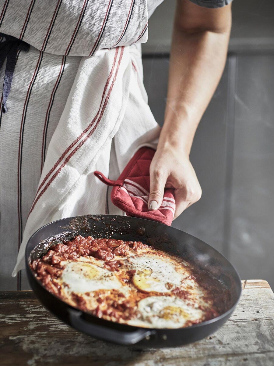 With colours and patterns that remind of a Swedish country house, HILDEGUN kitchen textiles, from tea towels to oven gloves, are super practical accessories for the dedicated home chef. The stylish apron keeps your outfit spotless until it’s time to join your guests at the table.