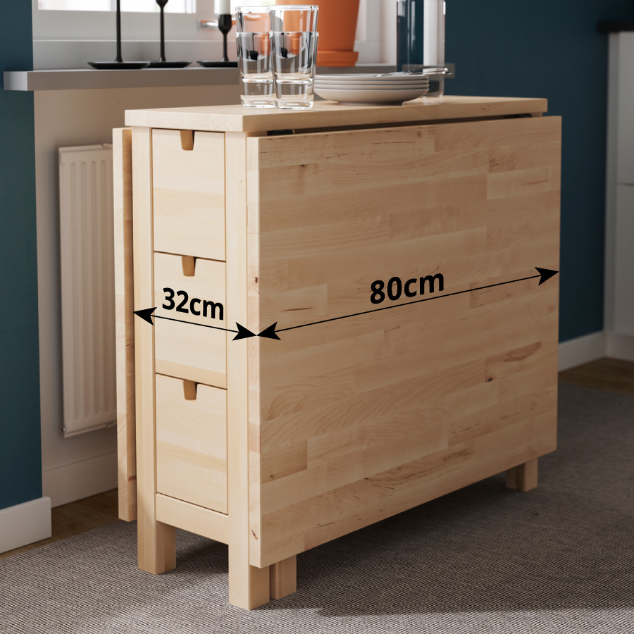 The NORDEN gateleg table seats 2–4 people, with adjustable drop leaves that makes it possible to adjust the table size according to need. When not in use, simply fold down the tabletop to save space. With six practical storage drawers to keep everything organised, it helps maintain a clean and tidy home. Made from solid wood, it’s durable, beautiful, and crafted from a renewable material for a more sustainable choice.
