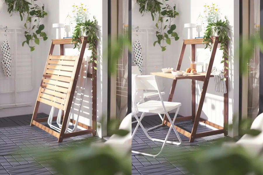 Need a table for one or two or none? With DJUPÖN folding table, you can create a cosy, comfortable balcony perfect for lounging, dining, relaxing – and drying laundry.