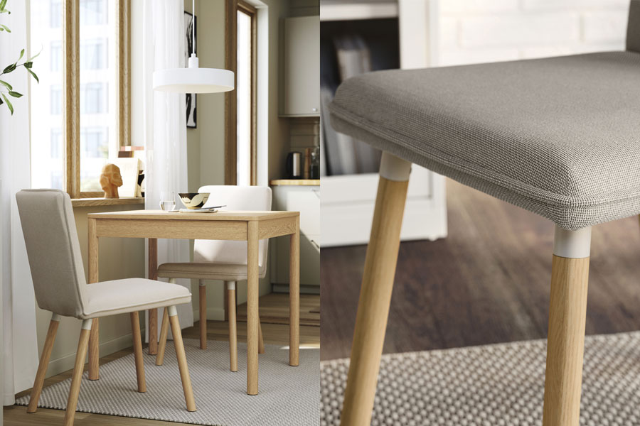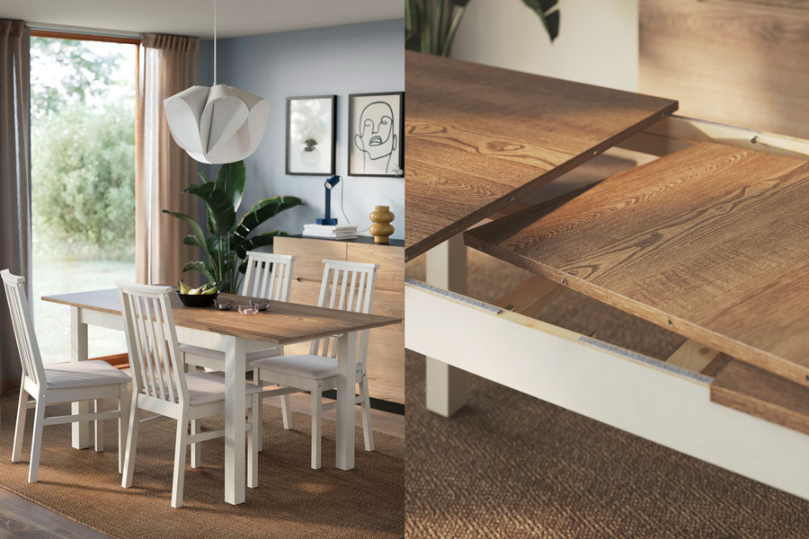 This table easily extends from seating 4 to 6, with an ash veneersurface and tinted clear lacquer that protects the wood’s naturalbeauty and makes upkeep easy – all while staying budget-friendly. Pair with ÅLHULT chairs for a cohesive dining space.