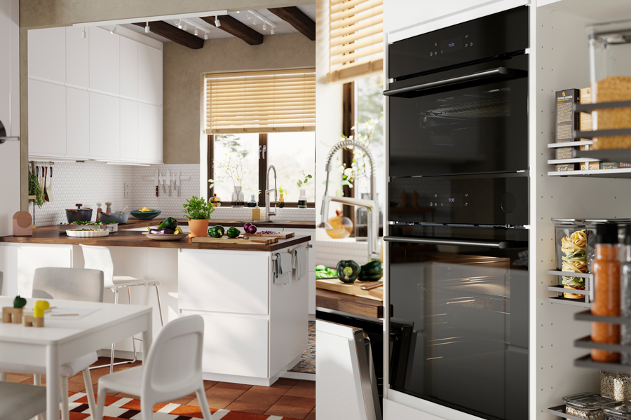 The METOD cabinets in this kitchen are fully stocked but perfectly organised, so every tool has its place, and every ingredient gets its moment to shine.