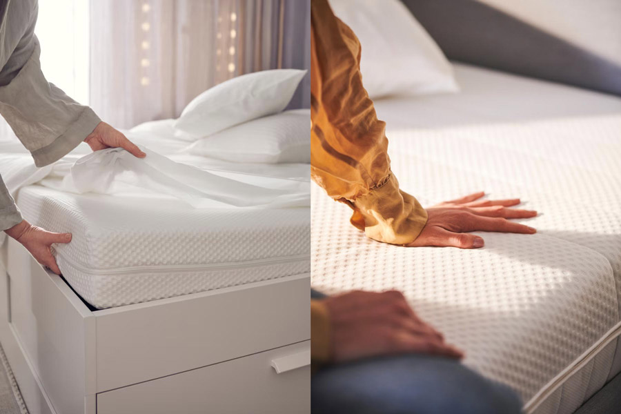 The comfort zones of our mattresses are simply zones that support your body in different ways to keep your spine aligned and create a good a sleeping position. Slightly softer foam cutting around the hip and shoulder, so they can sink softly into the mattress. And slightly firmer foam cutting where, on the contrary, support is needed – such as for the legs and ankles.
