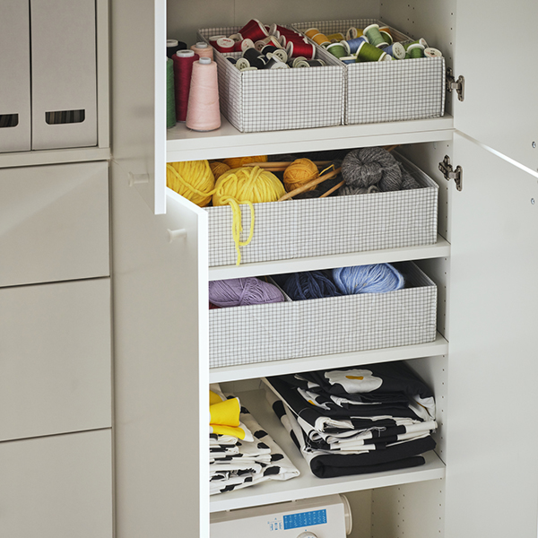 STUK products help you to divide up your things to find them more easily and to organise the inside of your storage furniture so you use it the max. They’re designed to fit perfectly in our LASTARE and PLATSA storage systems. But of course they work great with other wardrobes, cabinets and chests of drawers, too.