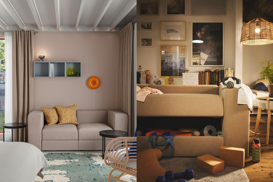 JÄTTEBO is a flexible modular sofa with storage for everyone. It has a simple shape, clean lines and is super comfy – surprising many people when they sit in it.