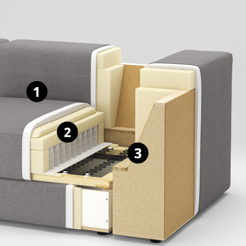 The modules have a soft comfort with high-resilience foam and pocket springs that follow your body and provide support – whether you are sitting, lying down or hanging out on the sofa.