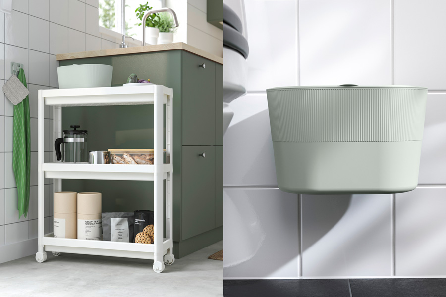 KINNASJÖ waste bin is a smart choice for your home. It can be hang on the wall to free up floor space, making it a convenient solution for collecting kitchen waste. It can also be placed freestanding on the bathroom floor or on a kitchen worktop. The included lid hides the waste and is removable for easy cleaning.