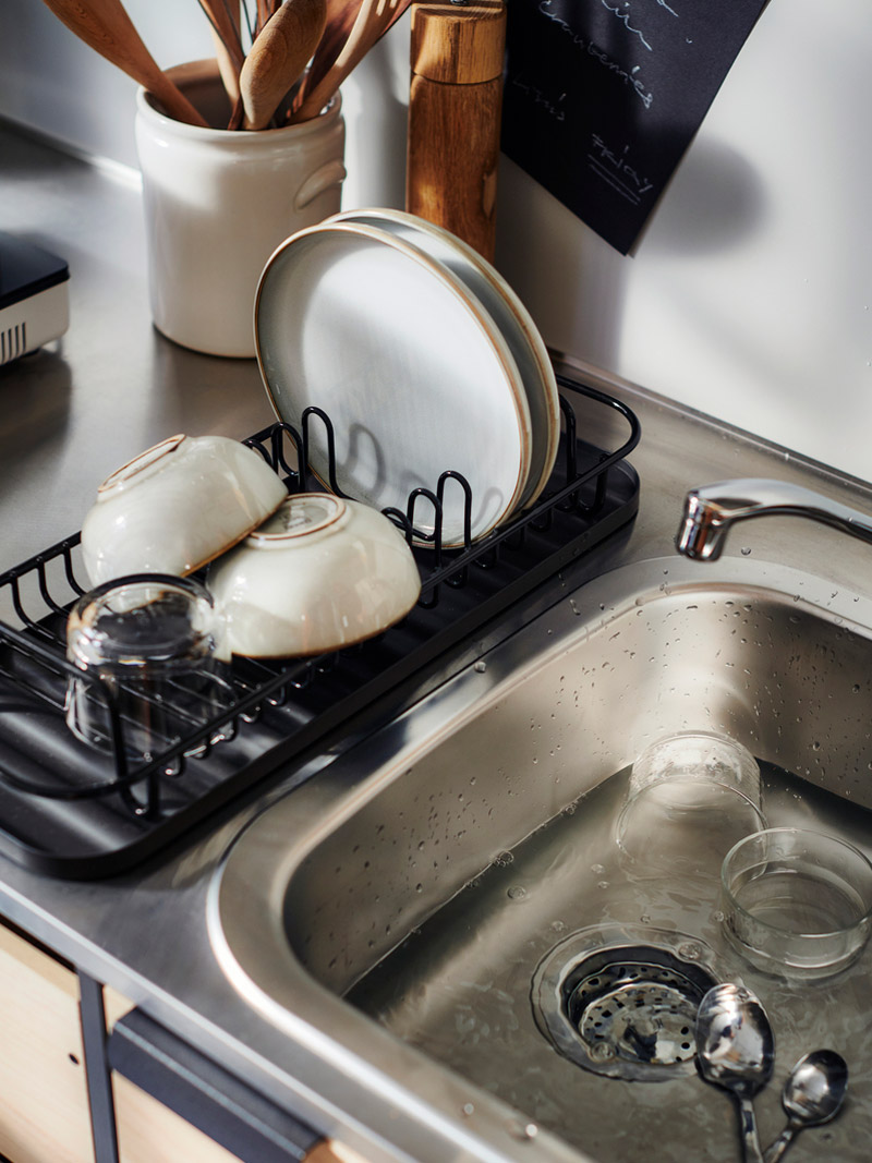 Maximise your minimal. Our dish drainers are designed for those who juggle a lot in a little space. A spot for every dish, every mug, and every spoon. And the best part? No pool of water to greet you. It’s all neatly collected below.