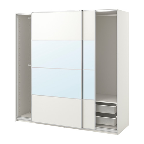 wardrobe with sliding doors, white double sided/white mirror glass, 200x66x201 cm