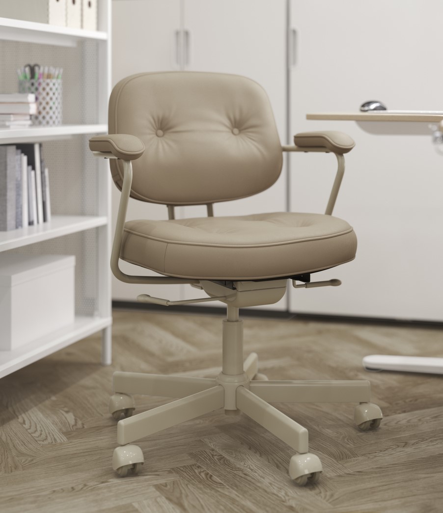 This ergonomic office chair has many features to keep you comfy and focused, such as a well-shaped backrest with adjustable lumbar support and soft full grain leather that breathes. 10-year guarantee