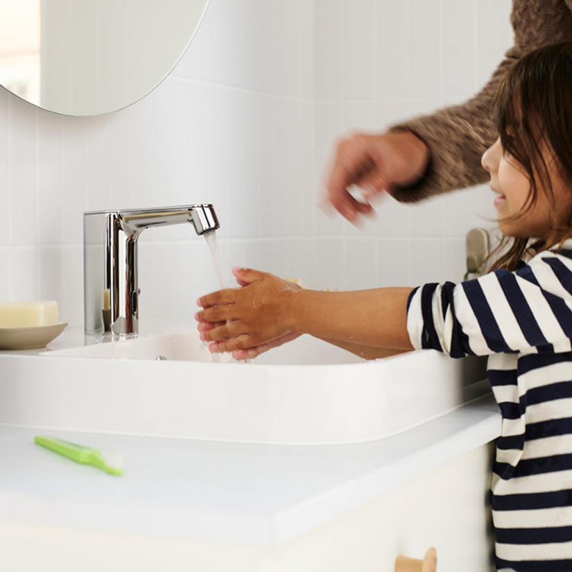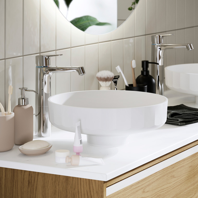All our new bathroom taps also come with a built-in pressure-compensating aerator. It regulates the flow rate, by mixing air into the water without losing out on performance or comfort – and helps you use less water compared to taps without this function. You probably won’t feel a thing, but by choosing this kind of tap you just made a huge difference.