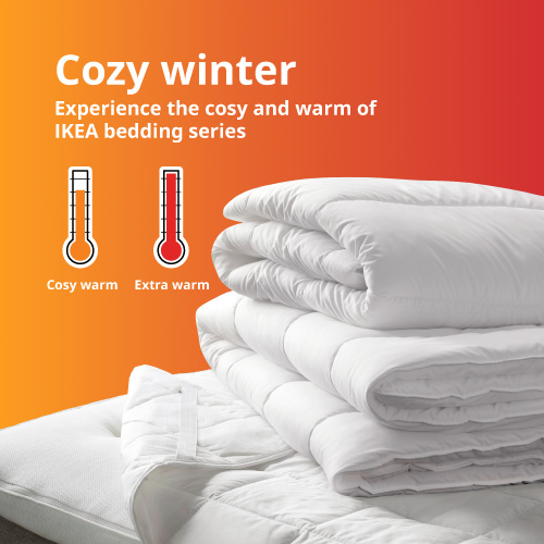 As the weather turns cooler, it’s the perfect time to bring extra warmth and comfort into your home. Soft textures and soothing colours from IKEA’s winter bedding help you unwind and drift off for a truly restful night. Snuggle up in breathable duvets or step onto a cozy rug—whether it’s the living room or bedroom, you’ll always feel the welcoming warmth.