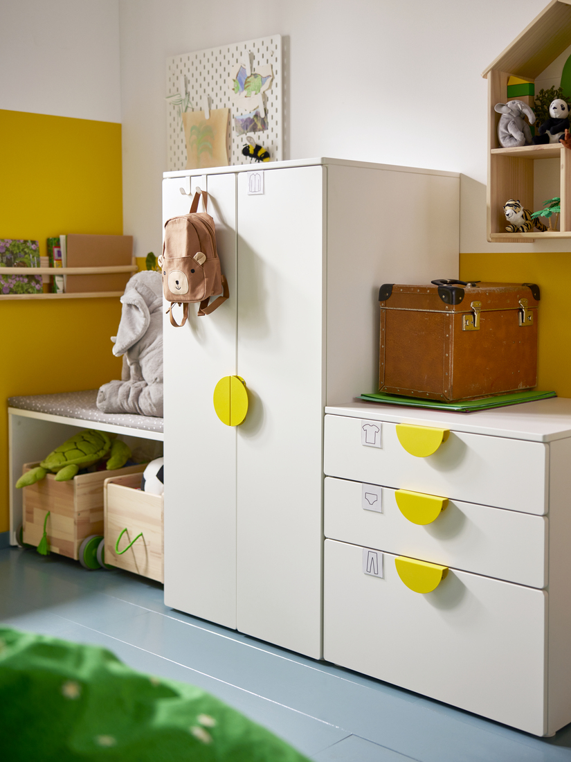 Planning the clothes storage together is the easiest way to make sure that a certain little one can get dressed in no time. Even if the child’s logic is, well... different to yours, the important thing is that everyone knows where everything goes. Smart storage solutions like SMÅSTAD easily adapt to fit growing needs.