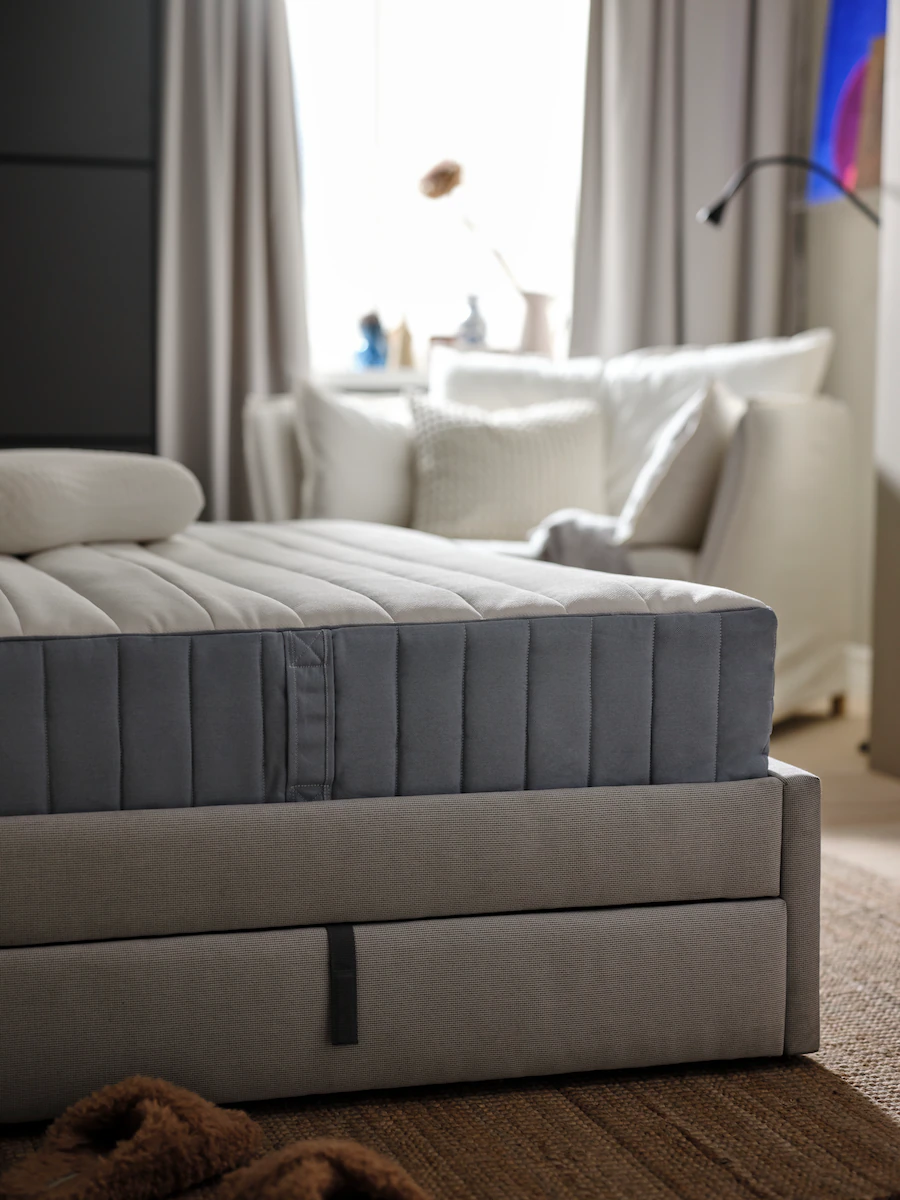 And how to get more of it when not on night duty. Try a spring mattress with comfort zones or memory foam to minimize disruptive wobbles. Customizing your bedding with separate duvets and different pillows to suit individual sleep styles can also help with those all-important zzzs in the early months.