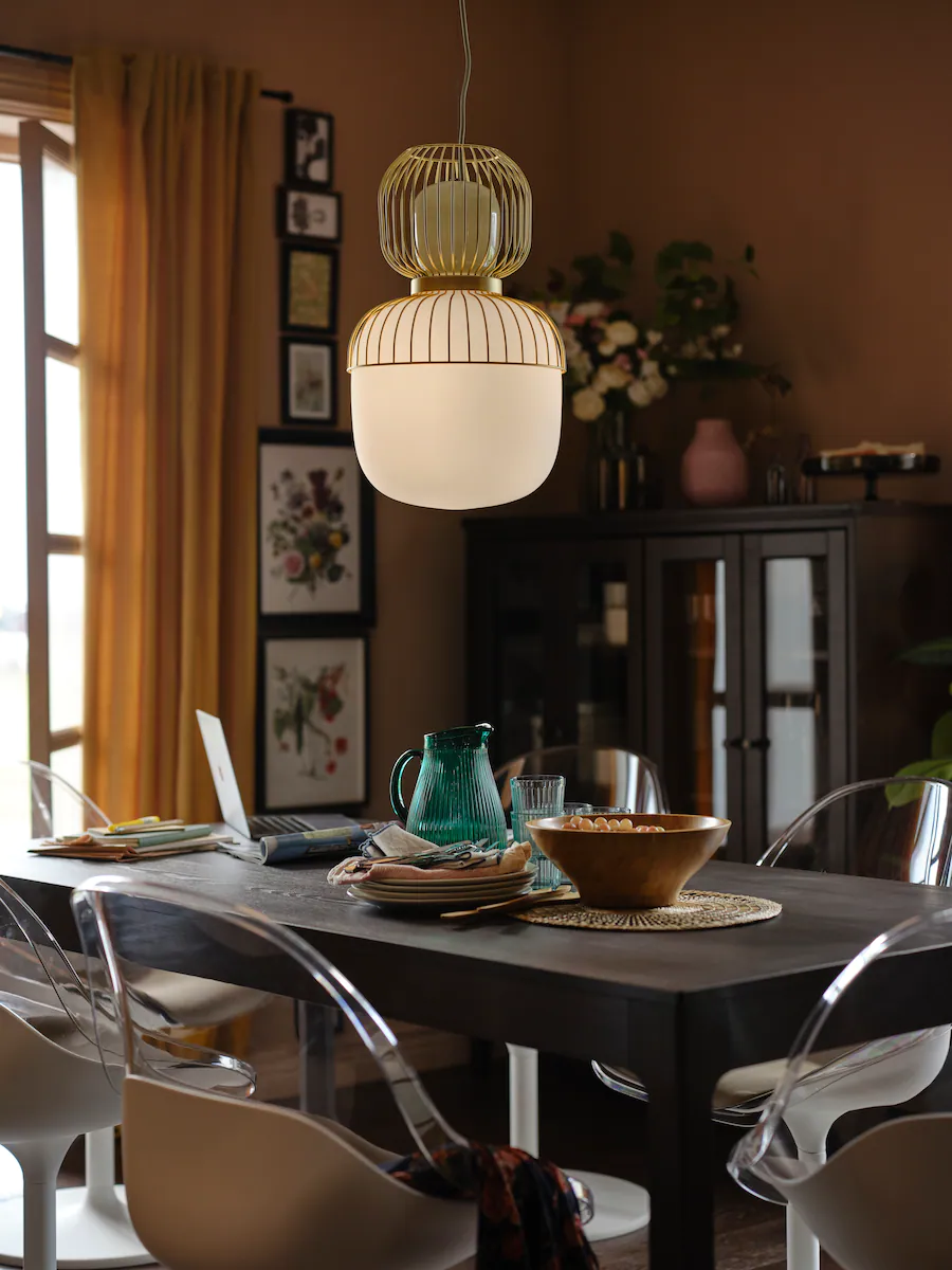 The central placement gives your dining table pendant the potential to be a real statement piece. So, why not choose a design that really adds a bit of personality? Just make sure that it also provides good functional light to support all activities – from enjoyable meals to homework and hobbies.