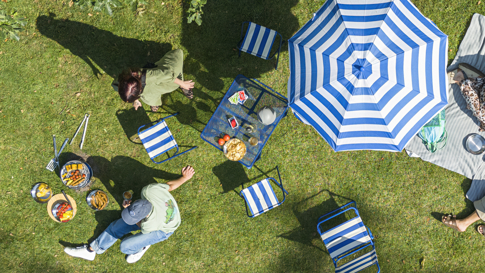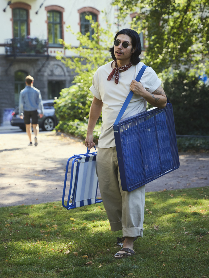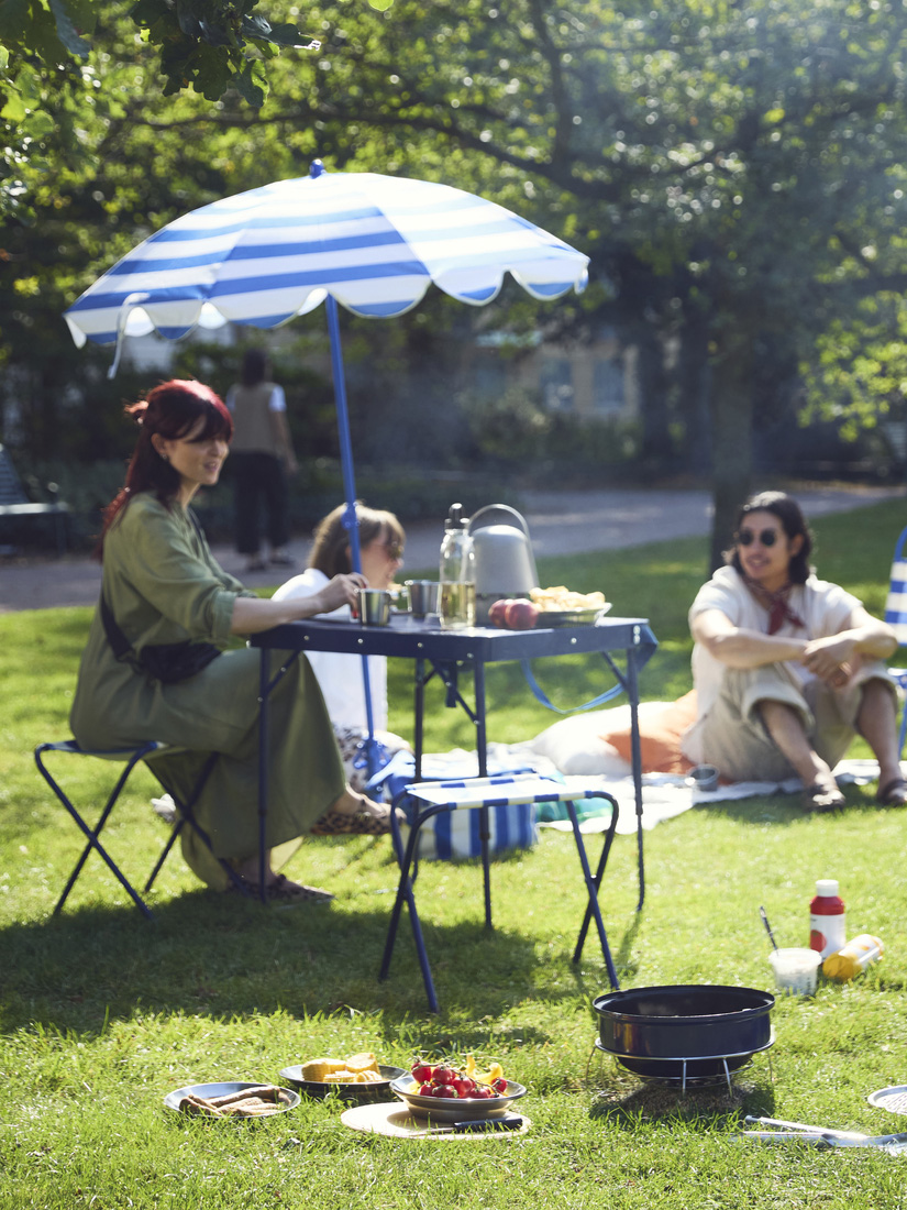The sun is out, everyone’s out. Hurry up and mark your spot with all your picnic essentials! With STRANDÖN foldable chairs, picnic blankets, parasol, and barbecue, you are always ready to meet friends in a flash. Who’s bringing the music?