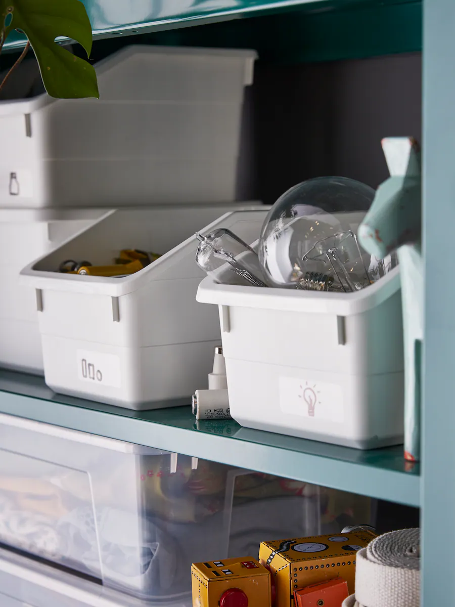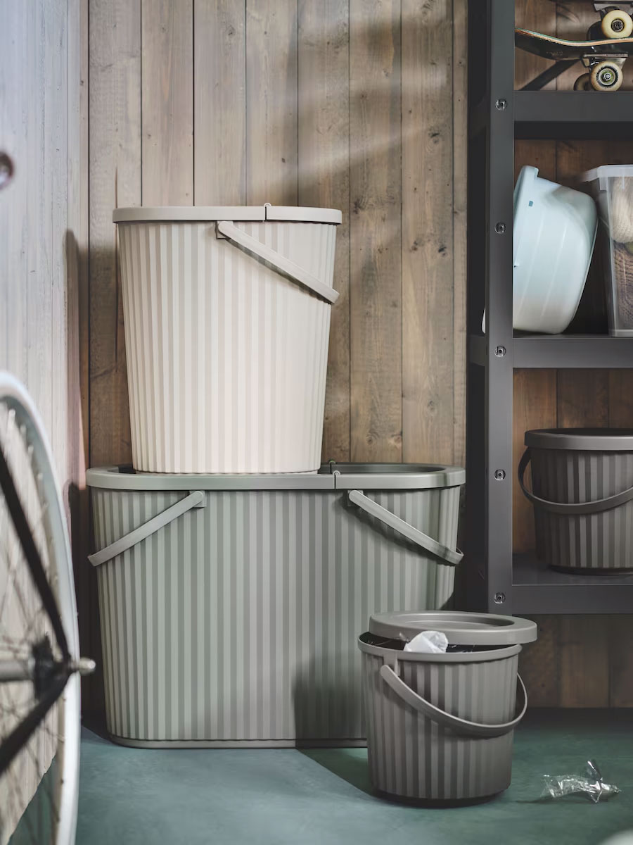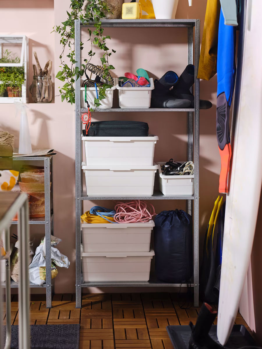 Ice skates. Roller skates. Sand toys. Balls galore. Sports equipment and seasonal hobby items don’t often need special treatment. But they do tend to be bulky and dirty. Use bags, boxes, bins, open shelves or cabinets to contain them. Easy-to-rinse materials are ideal.