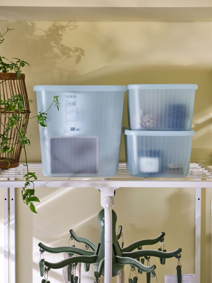 Sometimes a balcony does a garage-like job, even if it can’t fit a car or bicycles. A good, find-it-fast overview is key when storing smaller household necessities in an enclosed balcony. Choose stackable boxes and bins, especially ones you can see through, write on or attach labels onto.