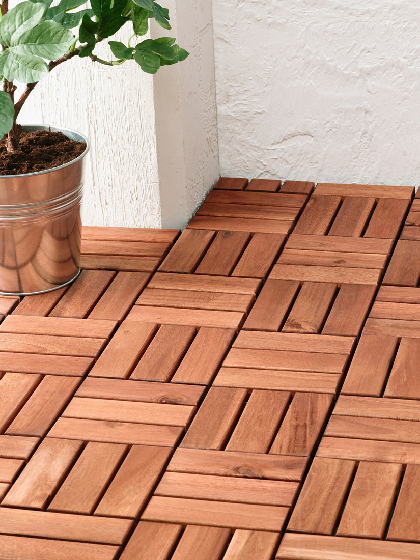When you have your total area of space, these calculations tell you how many flooring packages are needed to cover it. Each package of UTLÄNGAN floor decking covers an area of 0.9m²and contains 9 pieces. The floor decking can be cut to different sizes.