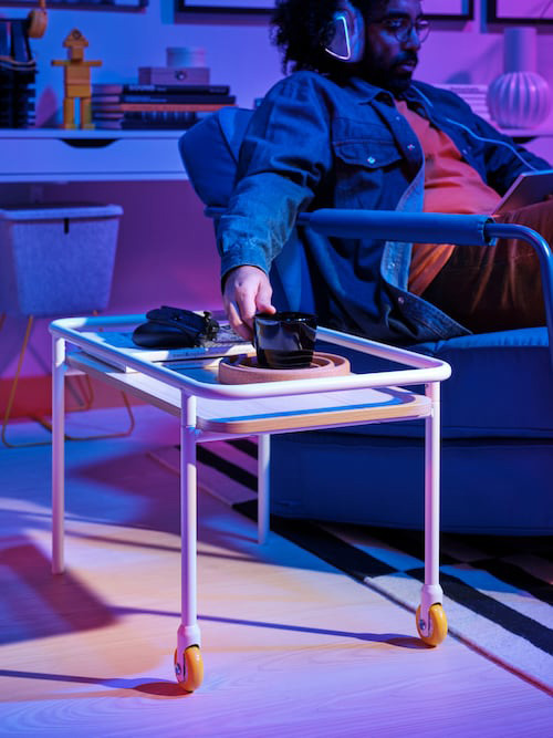 Castors are like cheats that let you roll storage where you want and find what you need fast for minimal pausing. Drawers keep dust away and add a calm, clean feel (even more so with trays). Shelves put your things out in the open, so you can just glance and grab.