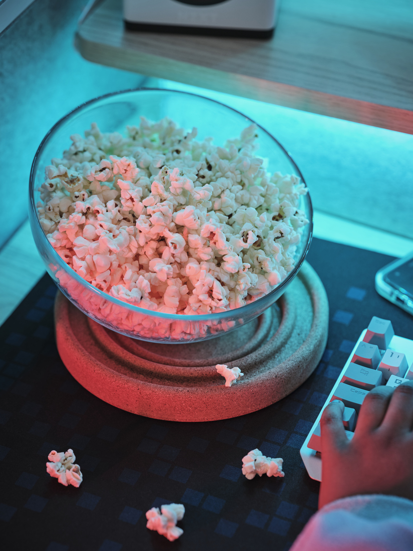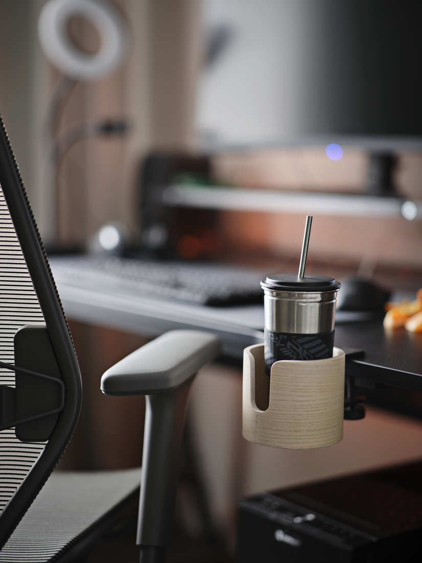 Infinite health? Not in real life. Make it effortless to stay hydrated and eat properly by storing refreshments nearby and reducing spill risks. Try a big coaster with high edges that can hold bowls, plates and cups. Or move liquids off desktops using a clamp-on mug holder.