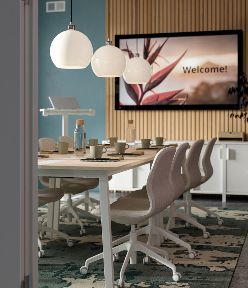 A lamp adds character to an office and boosts branding. Is your company inspired by the past? Modern and fresh? Natural and mindful? Whatever style fits, good lighting in working areas – a combination of daylight, general light and functional light without glare – helps everyone stay focused and energised.