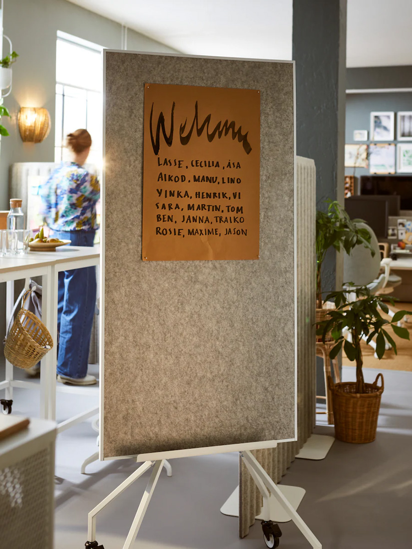 If you’re inspired to decorate but limited by rental agreements or budget constraints, consider a whiteboard/noticeboard with castors. It provides more space for artwork, posters, presentations, brainstorms and announcements. And since it’s easy to move, you’ll find plenty of ways to put it work.