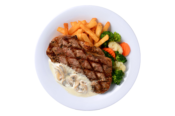 西冷牛扒配薯條及酸忌廉蘑菇汁