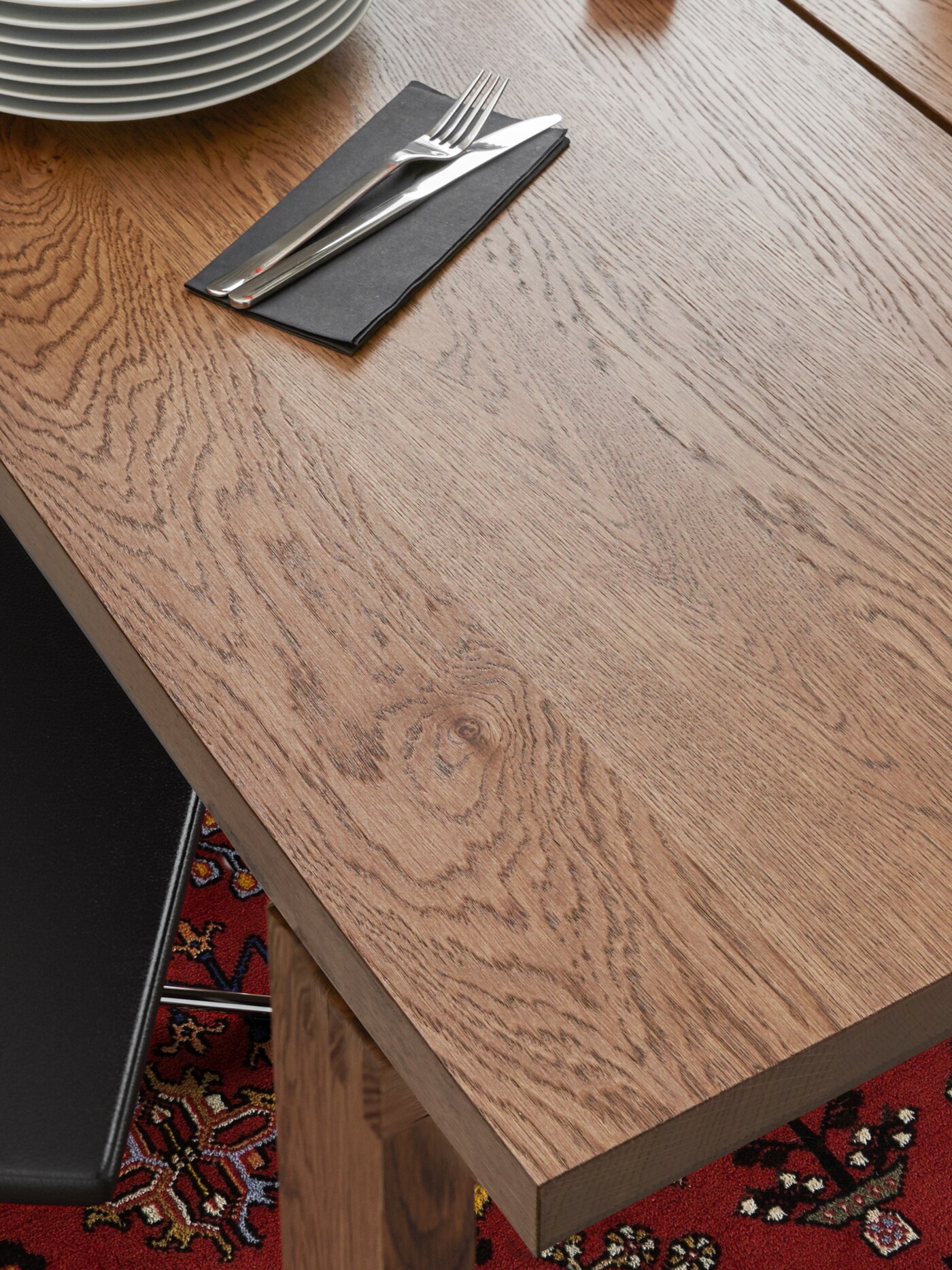 橡木是一種硬木,顏色會隨著時間而變深。MÖRBYLÅNGA檯面在密集纖維板上舖上3毫米厚的實心橡木飾面,透過在同一件傢具中使用不同木材能有效善用資源。這種優質飾面非常耐用,亦令每張檯變得獨一無二。