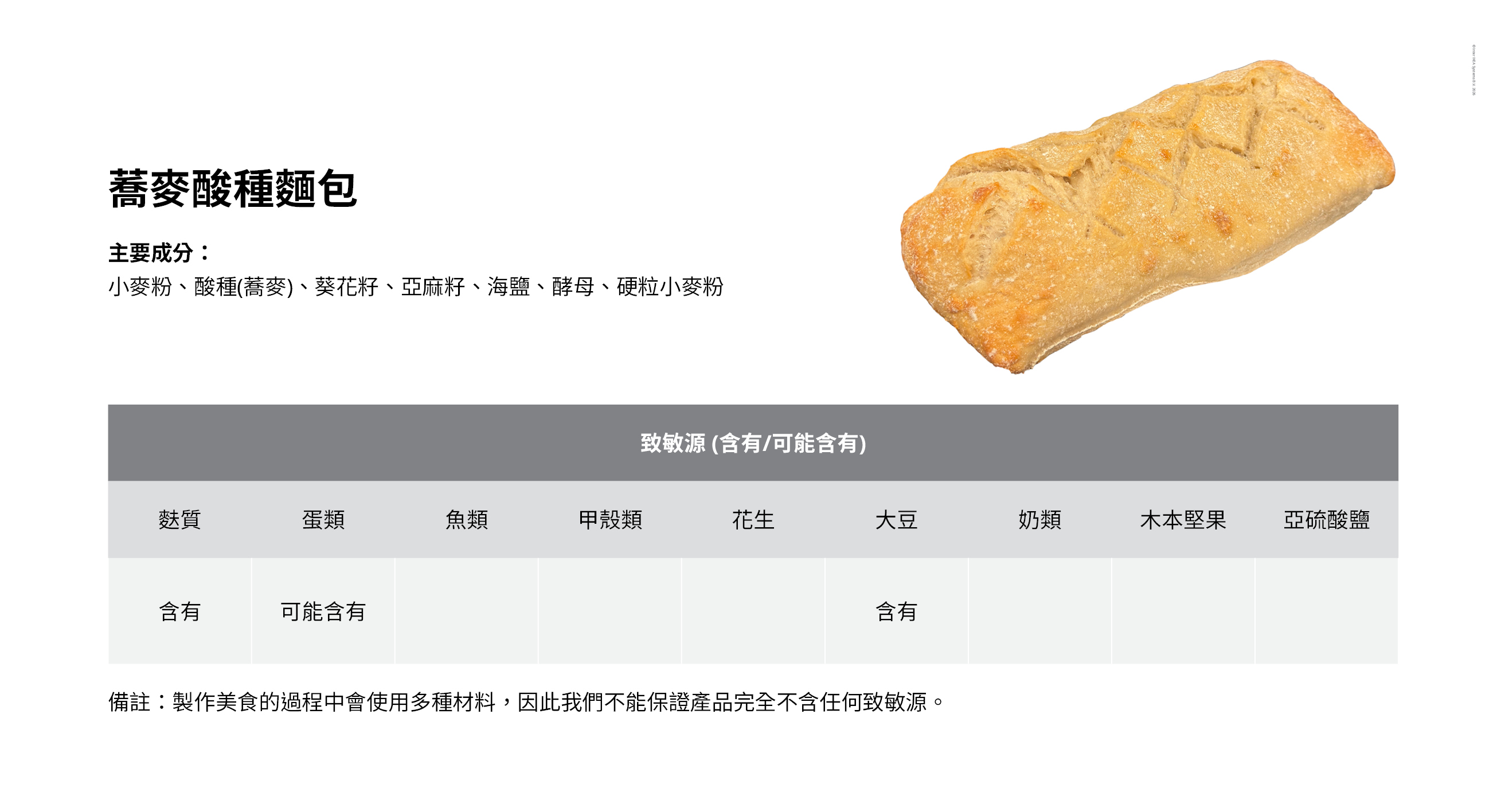 UGNSBAKAT 烘焙系列 - 成分與過敏原資料
