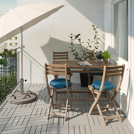 ASKHOLMEN戶外傢具系列以來自可持續來源的耐用洋槐製造,即使空間不大,你也能享受好天氣。配合花盆架及花槽,便能打造城市綠洲。