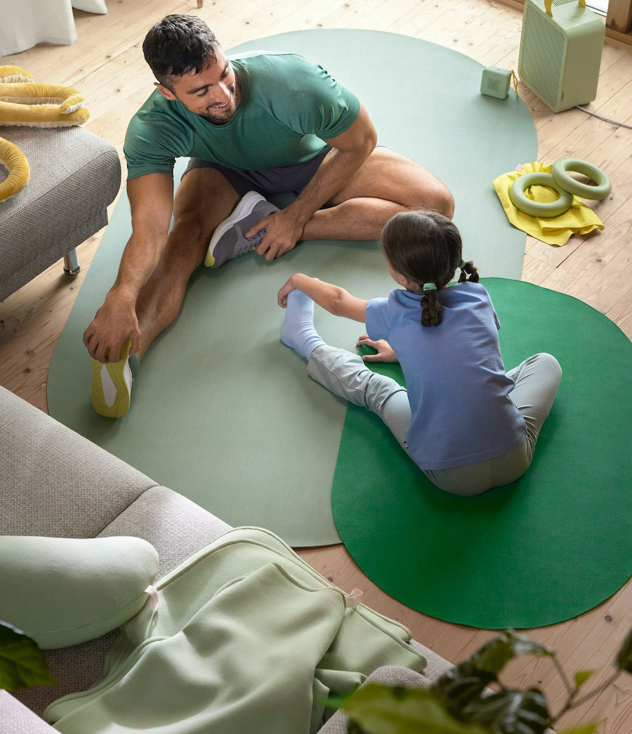 在家做運動,往往孩子、另一半、朋友甚至寵物也會一同動起來。DAJLIEN健身墊採用圓邊設計,更備有兩種尺寸,不用時可輕鬆捲起收藏。較小的健身墊方便攜帶隨時做運動,而大健身墊則可供兩個人同時做運動。