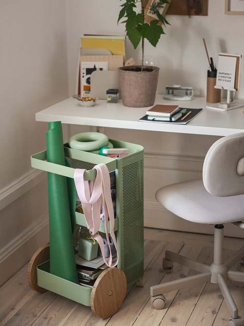 DAJLIEN系列採用悅目的色彩和貼心細節,能應付頻繁使用的需要,同時兼顧訓練、儲物和其他實用功能。例如這個衣帽架可用來晾曬運動服飾,活動几則可推進書檯下,讓你隨時投入動感生活。