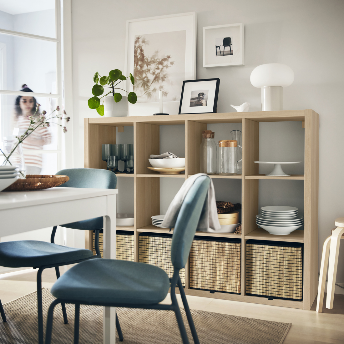 簡單又富有設計感的KALLAX系列具有多種不同功能。可直放、橫放,靠牆擺放或分隔房間,隨時隨地迎合你的風格、空間,符合你的預算,滿足你的需要,更可配合抽屜、層板、貯物盒、內部配件使用。