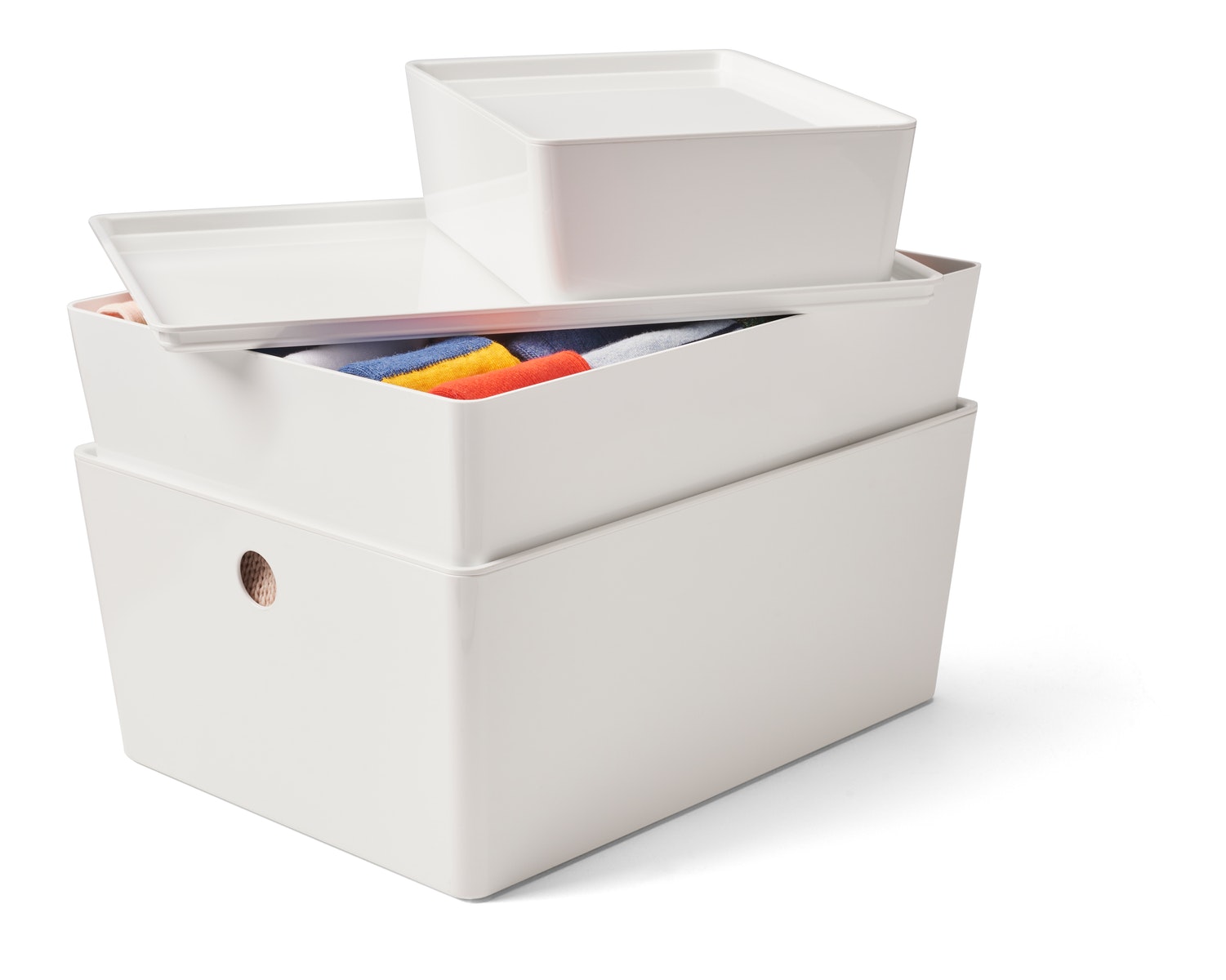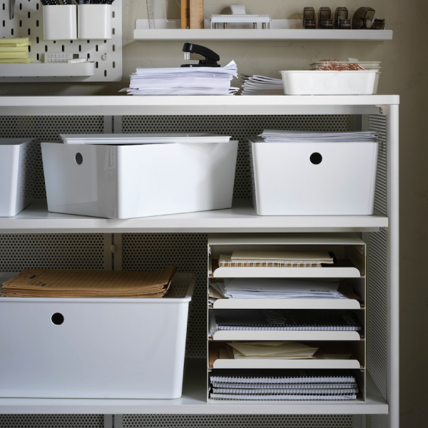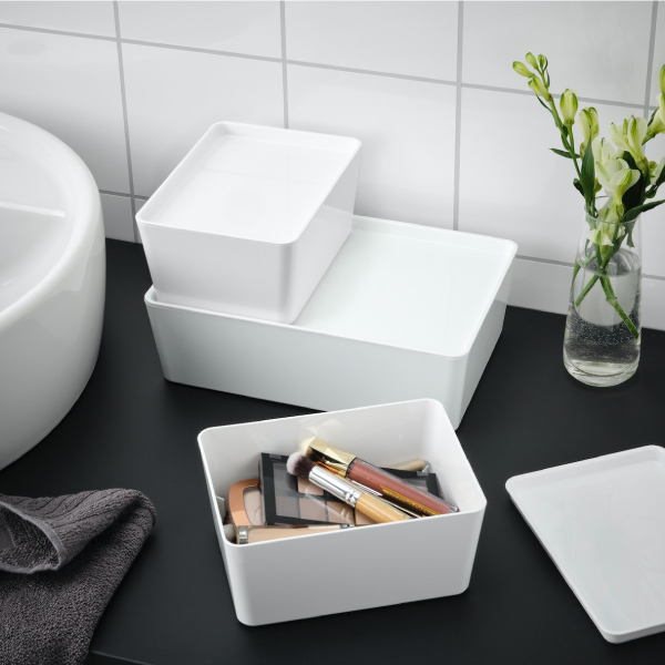 KUGGIS儲物箱附有頂蓋,以免物品封塵,而且可以疊起,令家居保持整齊。儲物箱可放進BESTÅ傢具,並備有多種大小選擇,滿足不同需要。