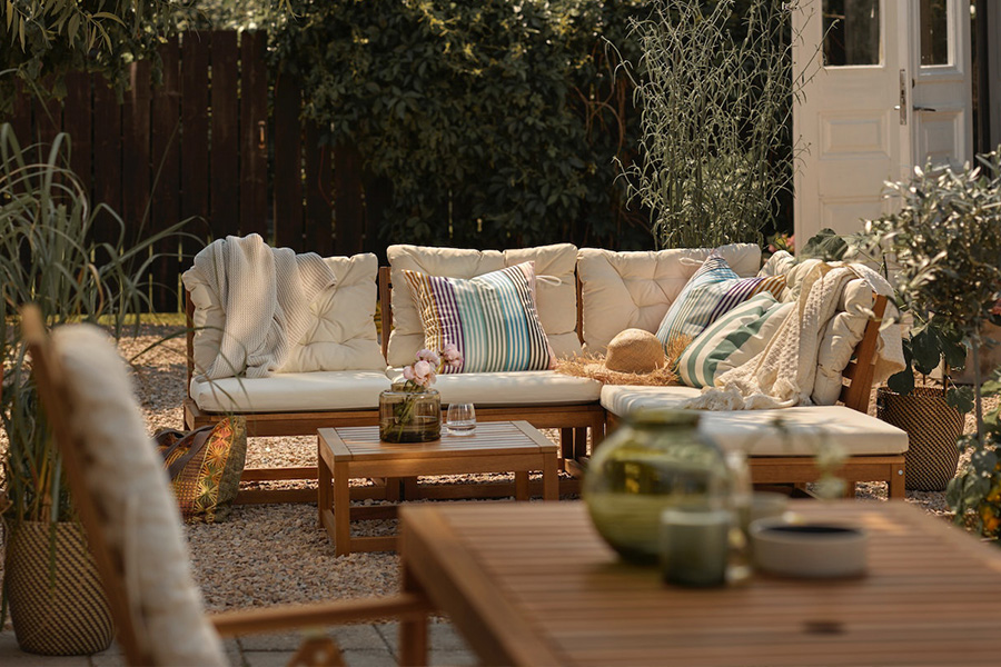 坐臥在戶外享受陽光與微風總是特別愜意,別忘了添一些咕𠱸跟坐墊增添舒適感!