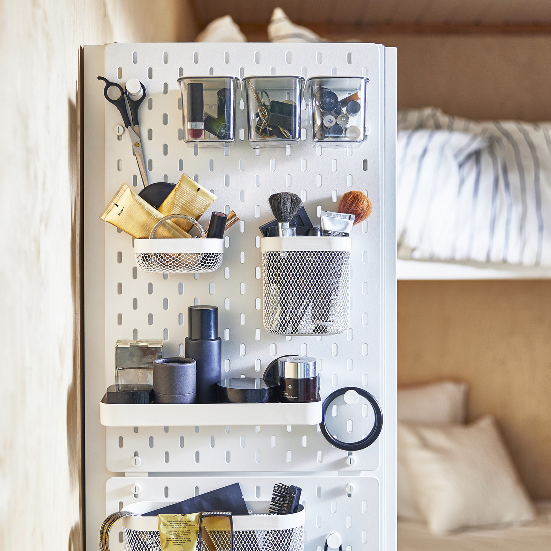 無論家裡任何地方需要儲物或想收納什麼物品,SKÅDIS系列都能符合您的需求。SKÅDIS系列適合在任何地方使用,浴室裡可收納牙刷和護膚用品。廚房裡可放置廚具和調味料罐,方便拿取使用。您可盡情發揮想像力用不同方式使用SKÅDIS系列。